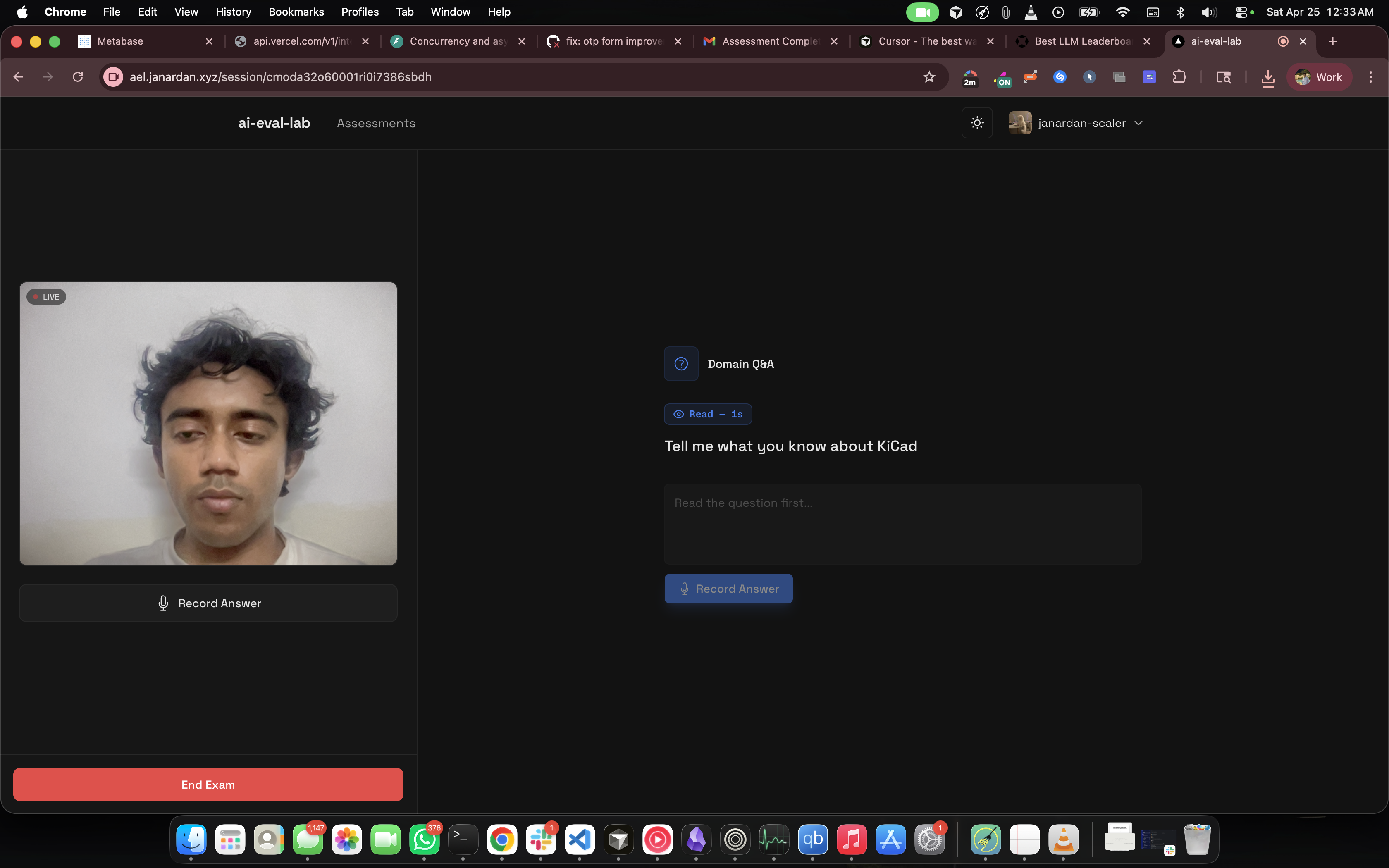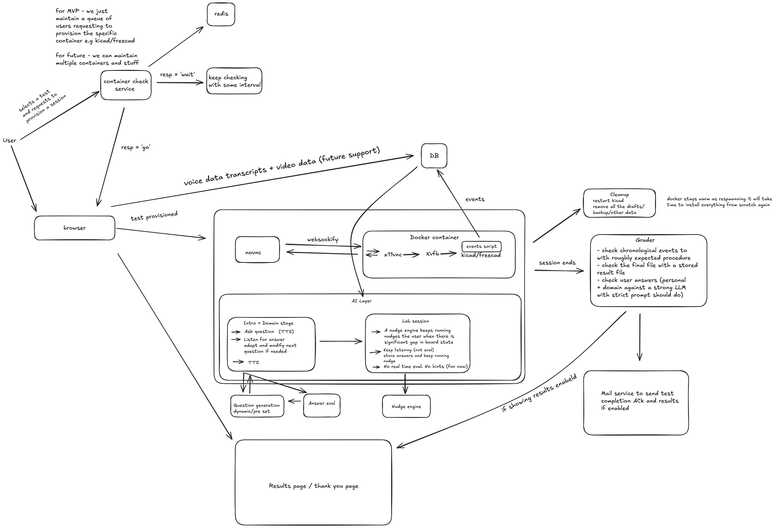 Will I try to sell this as a hiring/testing solution? Not yet. It needs proctoring, better infra, more rigorous grading rubrics. But as a proof of concept for "can we evaluate engineers by watching them work"? Yeah. It works.