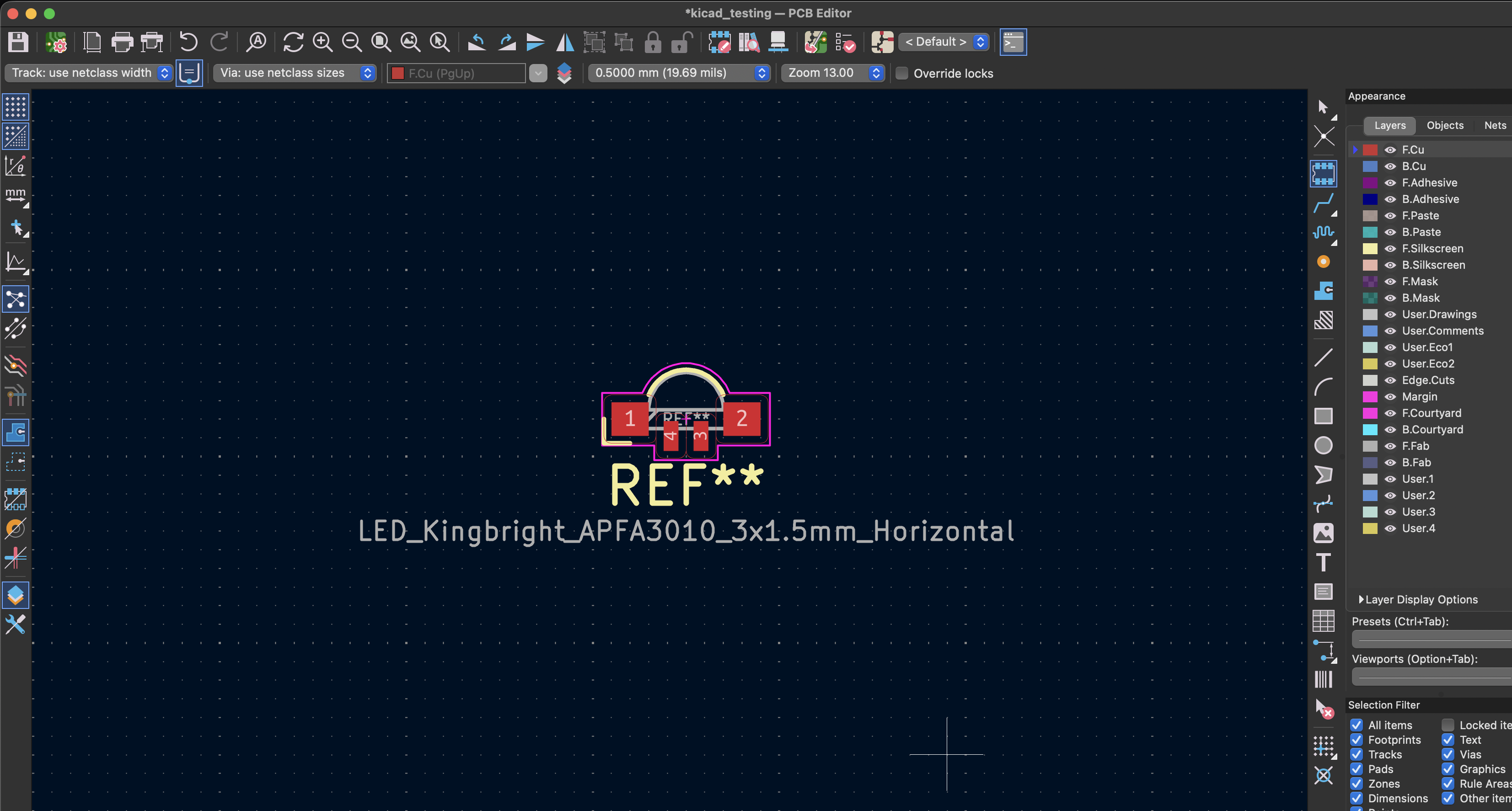 i go to Place > Place Footprints > searched for "LED" > selected one and placed it.