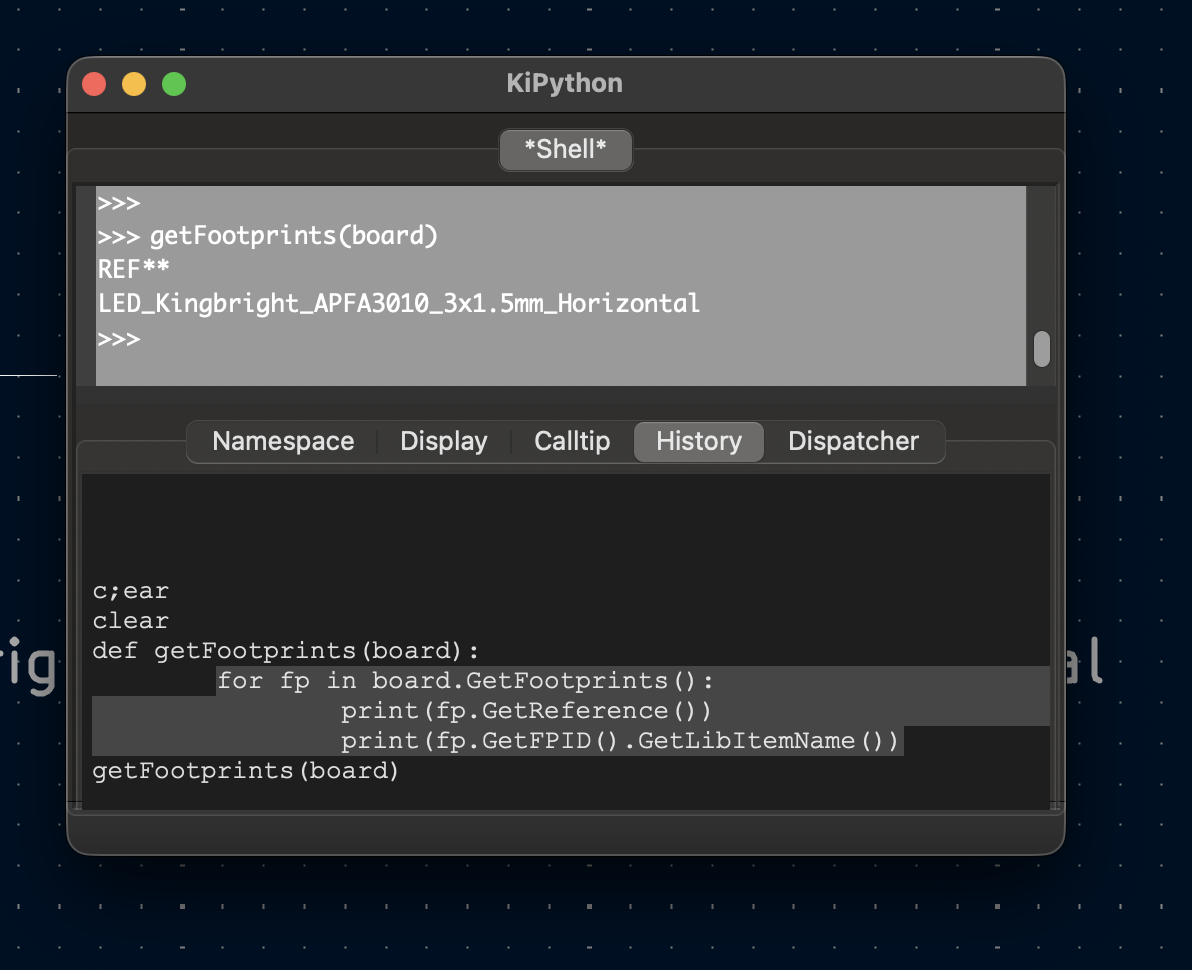 Okay, the app is working now, what next? A custom telemetry plugin to track the board state over time as the user performs activities. With Claude, I came across the scripting console and python module called pcbnew, now I tested the theory of telemetry with a simple script